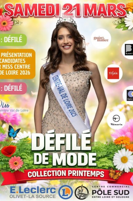 Envie de découvrir les candidates à Miss Centre-Val de Loire 2026 ? Assistez aux défilés où les candidates seront présentées au public. 📍 galerie E.Leclerc Olivet Pôle Sud📅 21 mars 2026 à 11h00