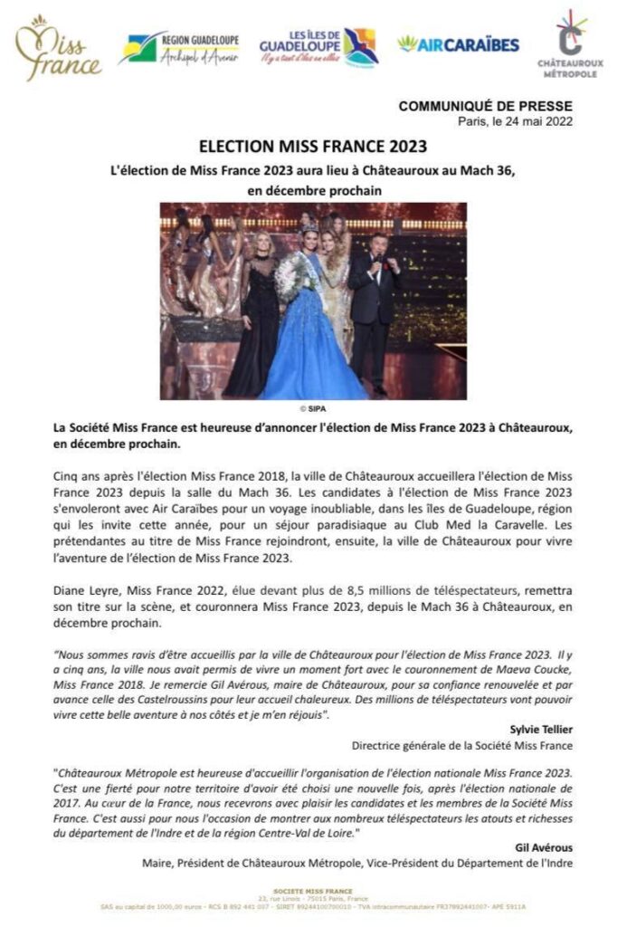 Autre information : il n’y aura pas de Miss Mayotte cette année à l’élection de Miss France 2023. Partager : Cliquez pour partager sur Facebook(ouvre dans une nouvelle fenêtre) Facebook Cliquer pour partager sur X(ouvre dans une nouvelle fenêtre) X J’aime ça :J’aime chargement…